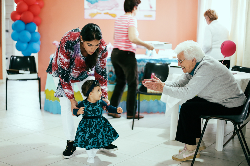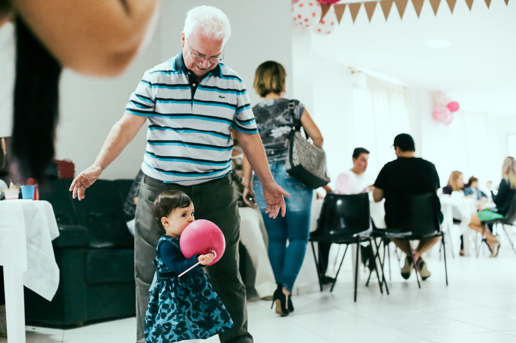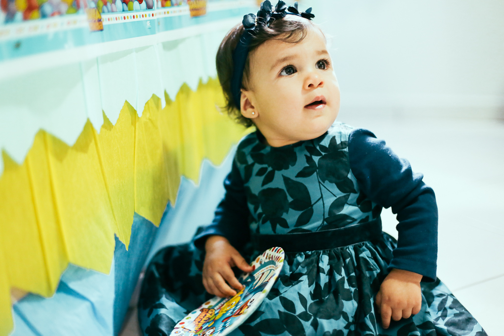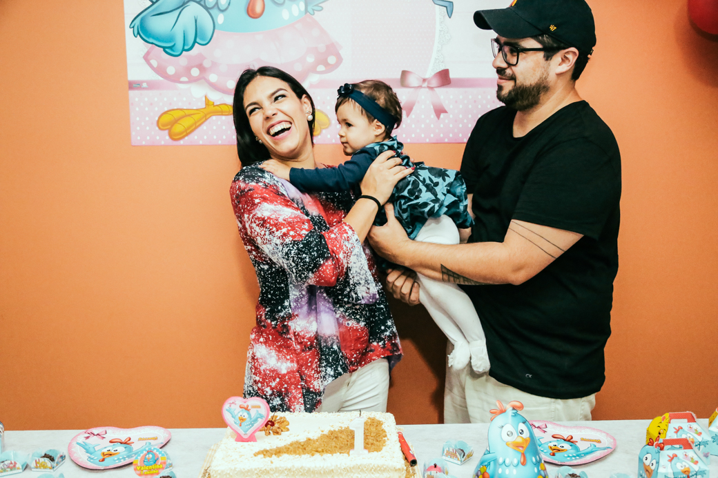 Valentina é esperta, curiosa, gosta de comer de tudo, ama desenhos em especial o Super Wings e claro soube aproveitar muito a sua festa de um ano andando o salão todo e curtindo muito com os pais Barbara e Paulo, avós, bisavós e amigos.